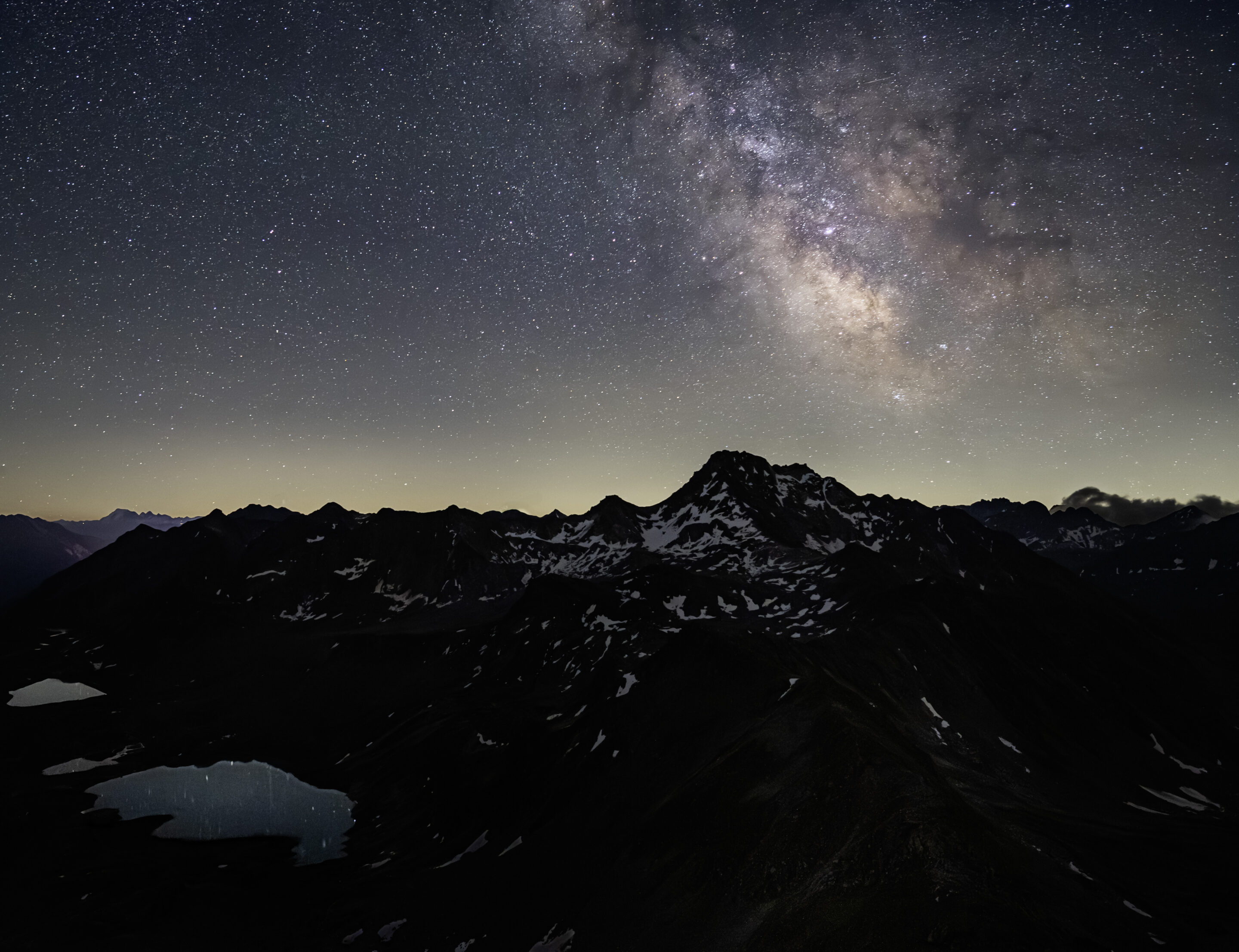 Die Serie erzählt den Übergang vom Abend in die Nacht. Nebel legt sich über die Berge und verschleiert ihre Konturen, während das letzte Licht den Himmel zum Glühen bringt. Dann entfaltet die Milchstrasse ihre Weite über den Ostschweizer Alpen. Zurück bleibt Stille, Tiefe und die leise Schönheit einer Landschaft, die im Dunkel neu erblüht
